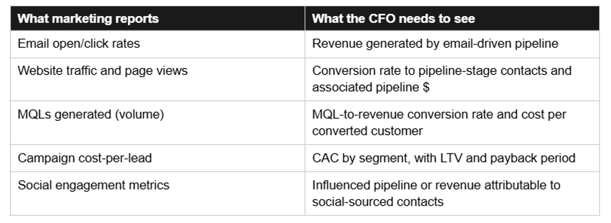 The CFO can now evaluate marketing as an investment with a return instead of an expense with an open rate. That distinction is the difference between getting budget expanded and getting budget interrogated.